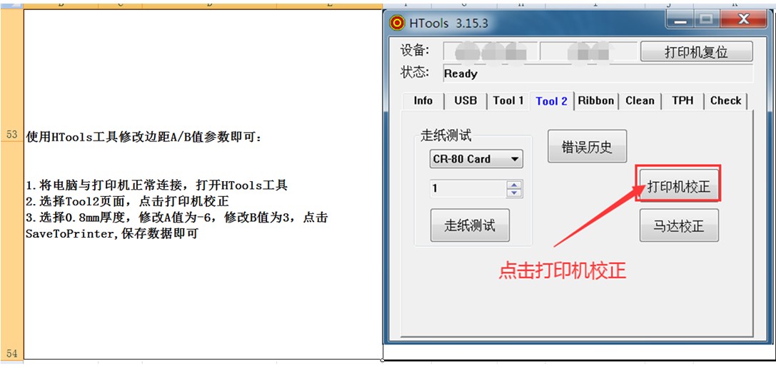 ○ 步骤3:选择卡片厚度0.8mm,修改A值为-6、B值为3,点击「SaveToPrinter」保存参数;