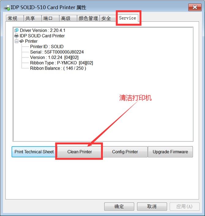 2.点击进入Service界面,点击Clean Printer开始执行清洁程序。