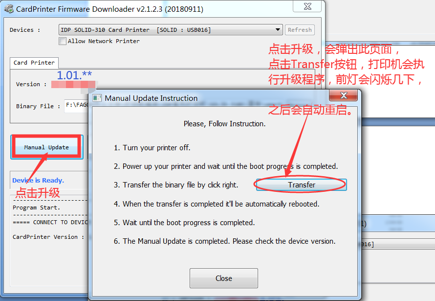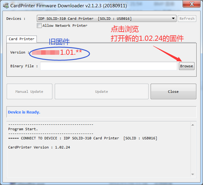 1.打开升级固件工具CardPrinterFirmware.exe